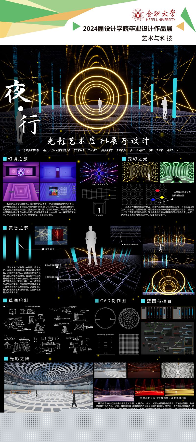 設計學院2024屆環境設計專業學生畢業設計作品——《夜行——光影藝術虛擬展廳設計》