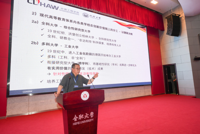 同濟大學中德工程學院院長馮曉作題為《科教融匯、產教融合,構建高校研教用相長、互動創新的內生機制》的報告。