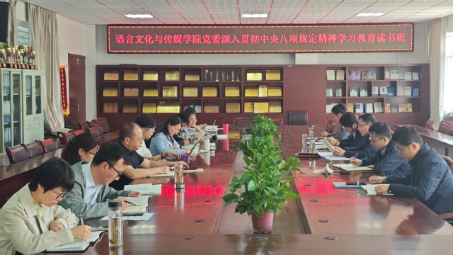 儲昭輝首先傳達學習了習近平總書記在貴州、云南考察時發(fā)表的重要講話精神和3月31日中共中央政治局會議精神以及學校第四屆第三次“兩代會”會議精神;然后解讀了《語言文化與傳媒學院黨委深入貫徹中央八項規(guī)定精神學習教育讀書班實施方案》,領學了《習近平關于加強黨的作風建設論述摘編》第一章“黨的作風關系人心向背,決定黨和國家事業(yè)成敗”。黨委委員、副院長殷明明領學了《習近平關于加強黨的作風建設論述摘編》第二章“作風問題本質(zhì)上是黨性問題”。會上還傳達學習了中央八項規(guī)定及其實施細則精神。