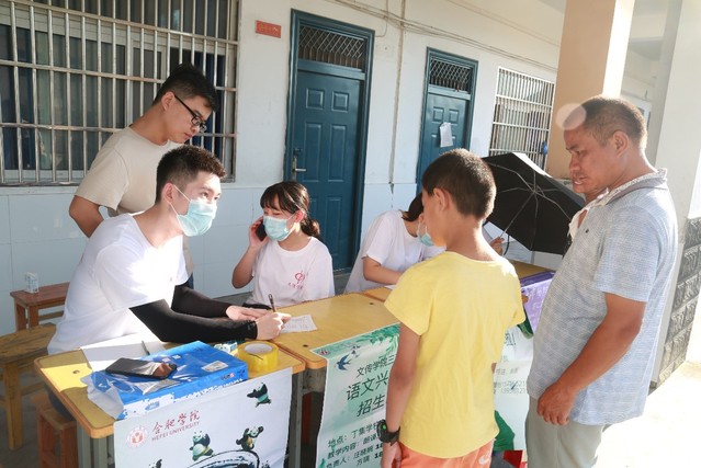 8月16日,“三下鄉(xiāng)”暑假實(shí)踐活動(dòng)的第二天,志愿者們迎著晨光,自發(fā)地將招生所需物資搬至教學(xué)樓前,在經(jīng)歷前一天的準(zhǔn)備后,緊張的招生工作由此拉開(kāi)帷幕。