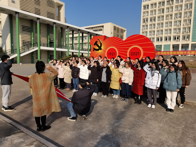 黨旗熠熠映初心,誓言鏗鏘筑忠誠(chéng)。12月29日,語言文化與傳媒學(xué)院在一期7棟教學(xué)樓前廣場(chǎng)舉行2021年下半年新發(fā)展黨員入黨宣誓儀式,新發(fā)展黨員在這里面對(duì)黨旗莊嚴(yán)宣誓。這誓言,是初心使命的再宣示;這誓言,是接續(xù)奮斗的再出發(fā)。廣場(chǎng)上,語言文化與傳媒學(xué)院學(xué)生第一及第二黨支部書記劉政老師和顧盼盼老師,帶領(lǐng)新發(fā)展黨員面向黨旗整齊列隊(duì)。