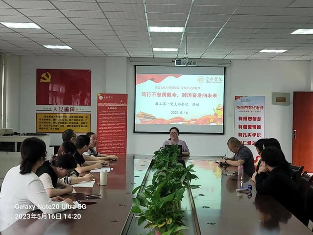 為貫徹學習習近平新時代中國特色社會主義思想,進一步加強黨員隊伍建設,5月16日下午,教工第一支部在院會議室召開黨員大會,開展主題教育集中學習交流研討會,支部書記洪婧以《篤行不怠勇毅命,踔厲奮發向未來》為題為支部黨員作專題黨課。