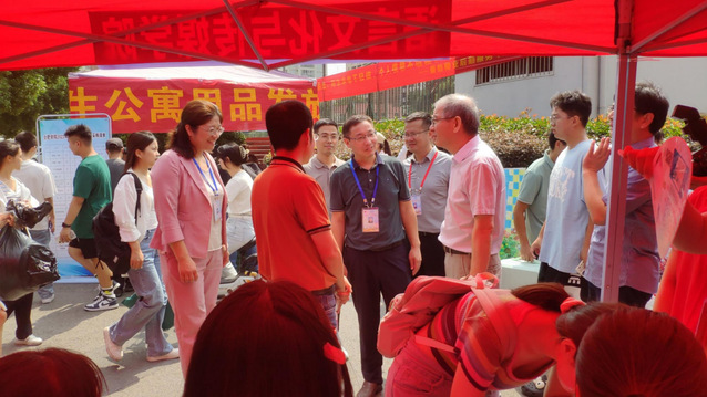 期間,合肥學院黨委書記王其東,語言文化與傳媒學院分黨委書記儲昭輝,語言文化與傳媒學院分黨委副書記、院長丁增武,語言文化與傳媒學院分黨委副書記張愛萍,語言文化與傳媒學院副院長殷明明到迎新現場視察。王其東親切詢問了迎新工作的進度,并向大本營志愿者了解了迎新工作的最新進展。他殷切叮囑相關負責人員迎新工作是當前學校工作的重中之重,要積極落實好迎新工作,讓新生和家長感受到志愿服務者熱情負責的工作態度。領導們針對例如志愿者服務等迎新工作做出了相關指示并實地巡視了迎新的最新進展,同時了解了我院志愿者服務流程、迎新工作的開展情況。劉政和柳守志在新生迎接點,協調迎新工作以及應對突發狀況。