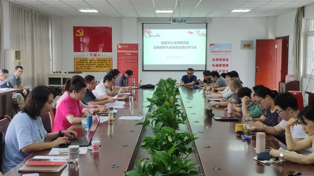 9月19日下午,語言文化與傳媒學院在二樓會議室召開全體教師大會暨政治理論學習會,會議由院黨委書記儲昭輝主持。