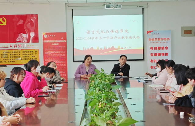 語(yǔ)言文化與傳媒學(xué)院深入落實(shí)立德樹(shù)人根本任務(wù),圍繞培養(yǎng)目標(biāo),堅(jiān)定育人中心,努力提升人才培養(yǎng)能力。學(xué)院于近期召開(kāi)了2023-2024學(xué)年第一學(xué)期師生教學(xué)座談會(huì),學(xué)院黨委副書(shū)記張愛(ài)萍、教學(xué)院長(zhǎng)殷明明、學(xué)工辦主任顧盼盼、教學(xué)辦主任章衡和各班學(xué)生代表與會(huì)座談交流。