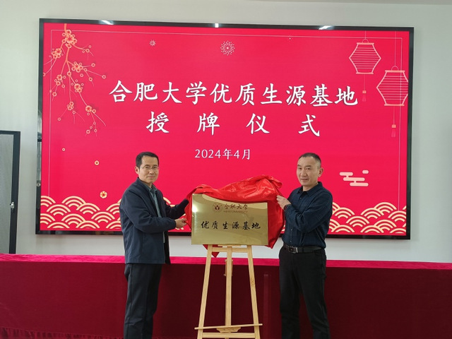 座談后,丁增武對秀山中學的部分同學進行了招生宣講,歡迎廣大學生報考合肥大學,并與程一文共同為新的“合肥大學優質生源基地”揭牌。